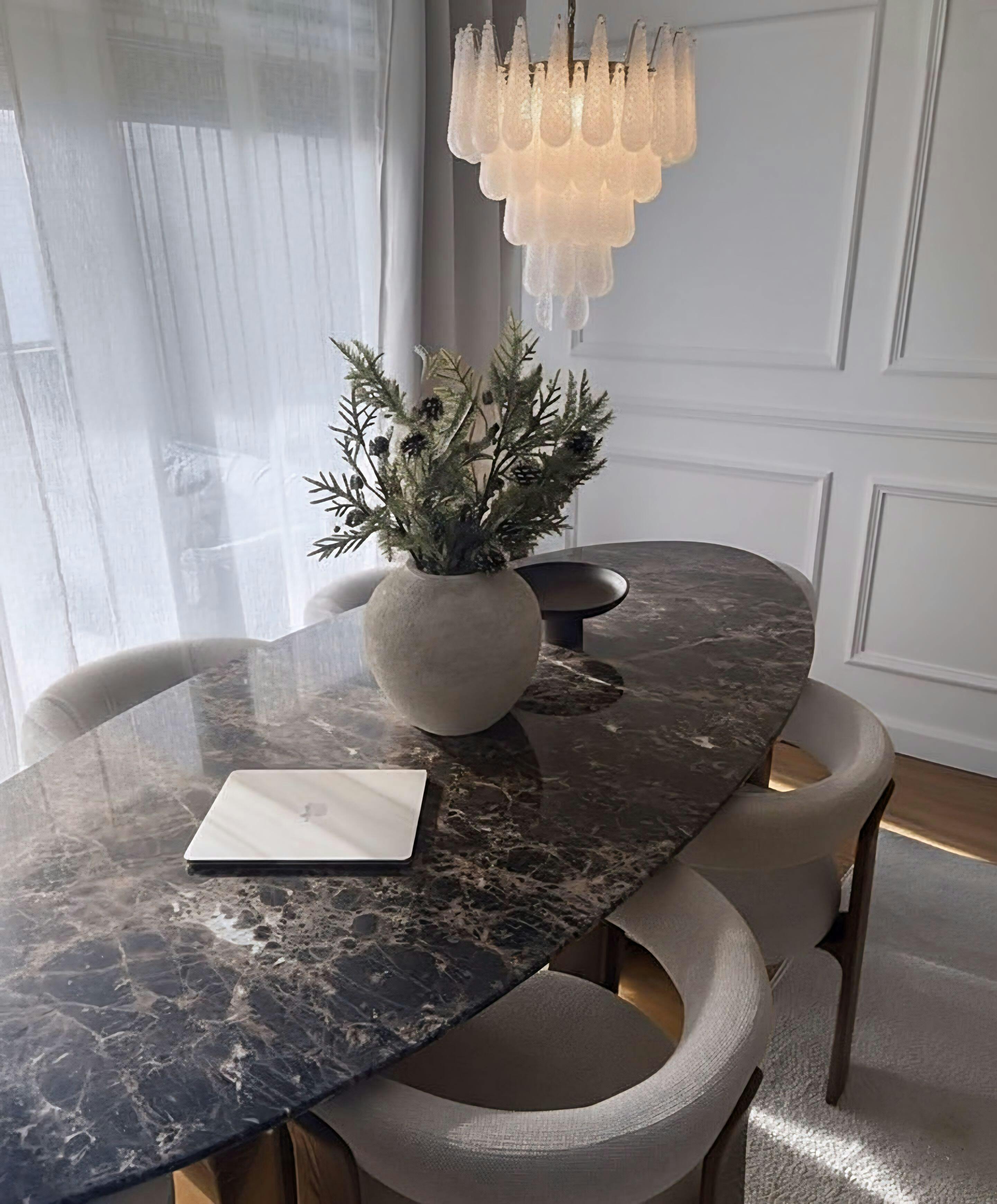 First of all, I would like to thank Emina a thousand times for her patience and for the time she dedicated to advising me as a interior architect. Thanks to her expertise, I was able to create my unique and rare table made of Emperador brown marble. Its shape is incredibly chic and truly one of a kind an ellipse exactly as I had imagined it. The quality of the marble is outstanding, truly high-end.